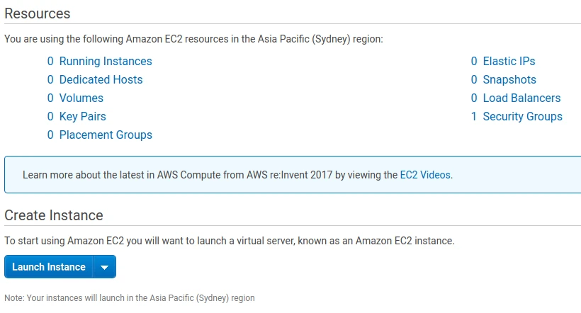 I already have an AWS account, although I haven’t used it in a while. You can see my 0 EC2 instances below: